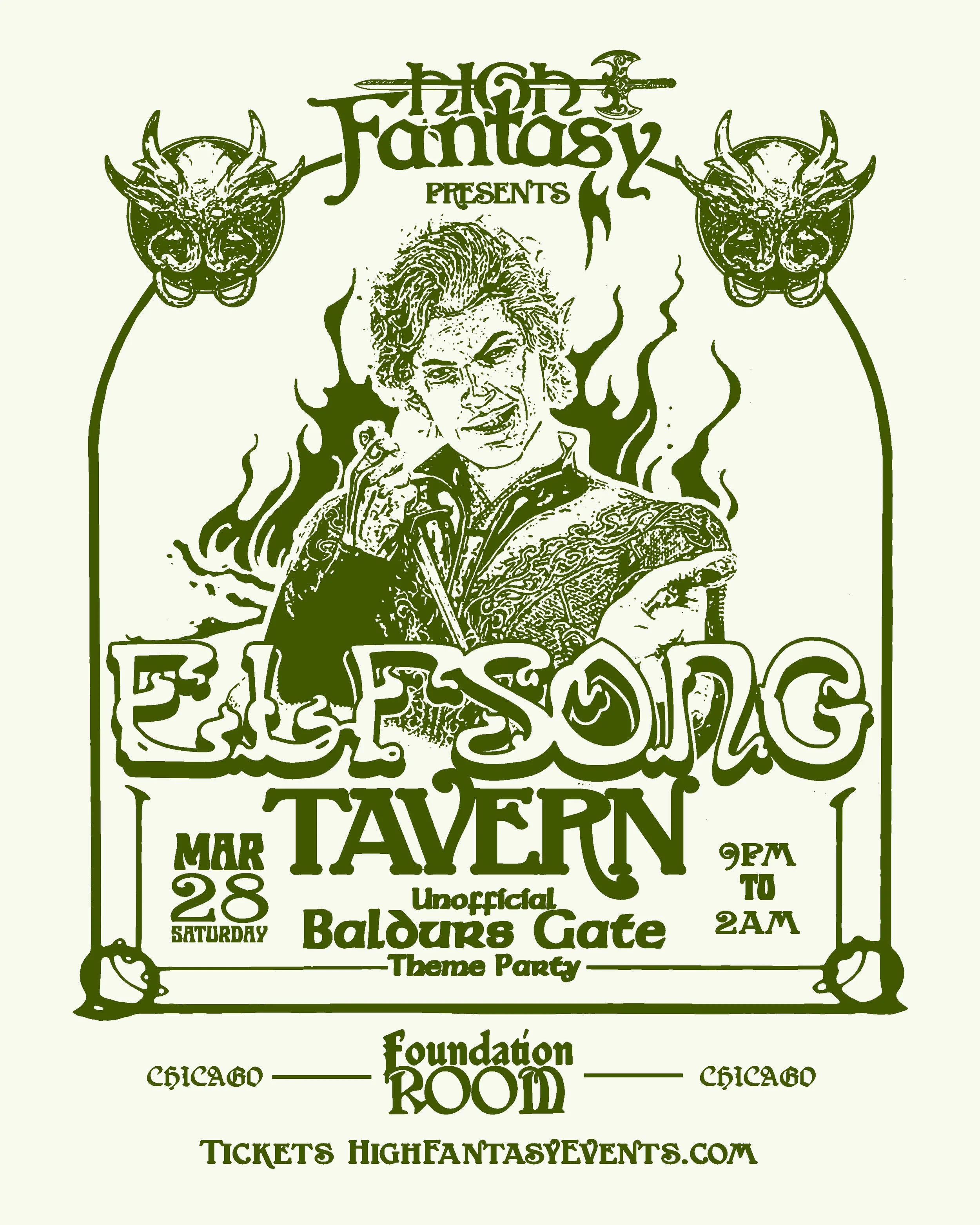 For one night only, a portal to Faerun opens in Chicago. Gather your party and step inside Baldurs Gate’s most legendary tavern where sorcerers seeking rare magic items, barbarians with infernal hearts, rogues, clerics, bards, and every class and subclass are welcomed in revelry. Expect immersive burlesque, drag, and fantasy character performances, divinations, roaming bards, a magical music selector spinning late into the night, themed activations, and a costume contest with prizes. No Baldurs Gate lore knowledge required. Arrive as your favorite fantasy character or creature, or wear elevated all black if you prefer subtlety.